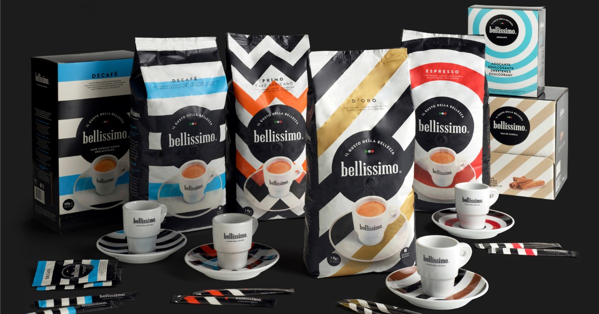 In this rebranding process, we created a new identity and a new visual universe with geometric and minimalist shapes, the new signature - ‘Il gusto della bellezza’ - which conveys a promise as chic and timeless as the Italian spirit itself, the new packaging line - with different packs for each blend (Primo, Espresso, D'oro and Decafé) -, and new Bellissimo point-of-sale materials.